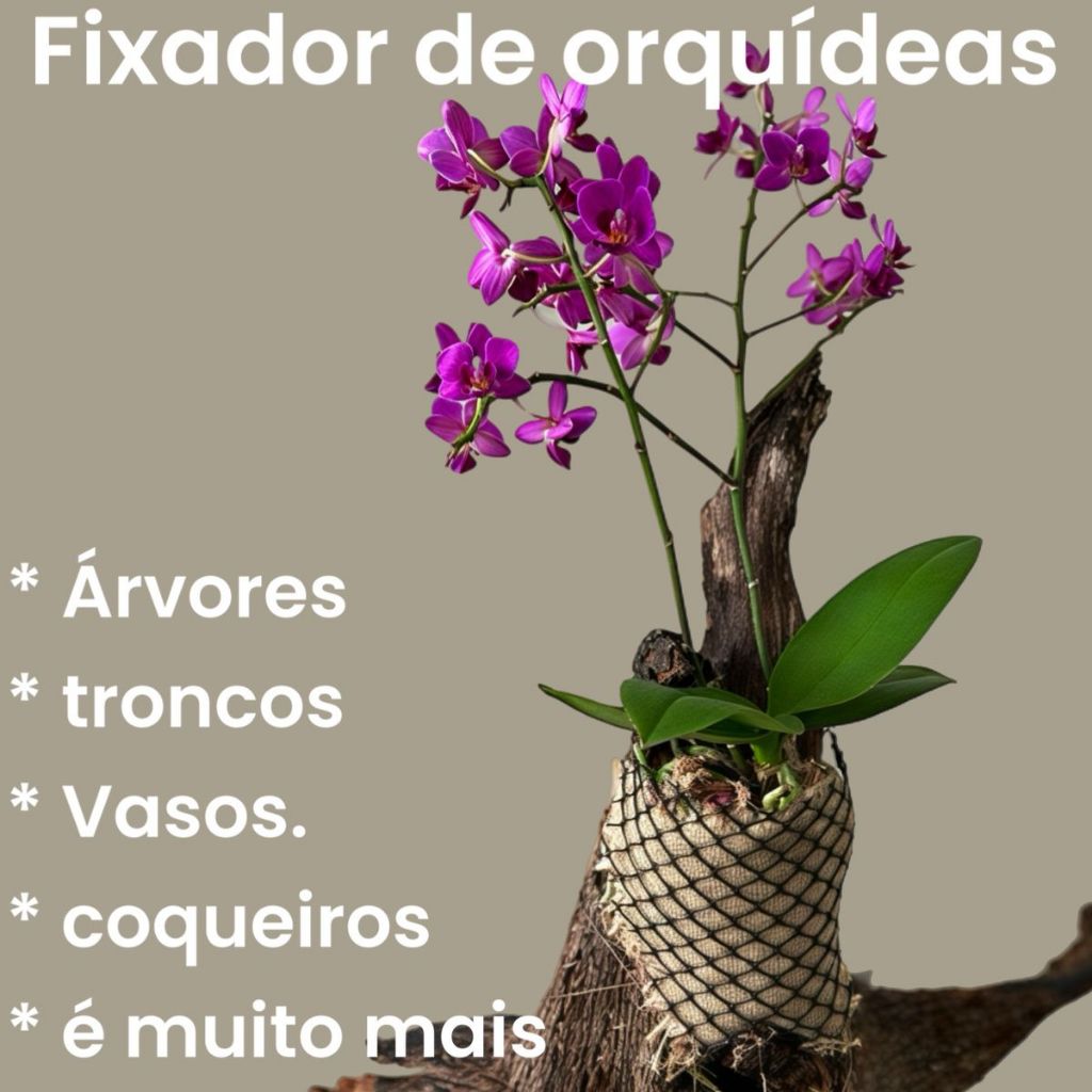 Fixador Premium para Orquídeas com Tela, Juta, Barbante e Sphagno. Adubo para floração ( 5 meses de adubação continua, so ira precisar molhar as plantas. Cultive com respeito à natureza. Estoque Promocional 10 Unidades. A UNIDADE acompanha 1 Adubo para florção 1 Tela fixação. 1 Juta para fixar o sphagno e manter umidade. 2 Barbante de 2 metros resitente a agua e sol. 6 Gramas de sphagno, sendo a quantia ideal por planta. Exemplo: O kit com 6 Unidades acompanha ( 6 Adubos floração, 6 Fixador premium , 6 telas, 6 Juta, 12 Barbantes de 2 metros e 36 Gramas de Sphagno. Passo a passo: 1 º Posicione a planta na árvore ou na superfície desejada. 2º Envolva as raízes com o sphagno. 3º Coloque a juta por cima para retenção de umidade. 4º Coloque a tela sobre a juta e amarre na árvore ou na superfície escolhida. 5º Coloque o adubo e ao molhar sua planta ja ira adubar Mais de 5 anos de deste comprovado a eficaz!! Essa Ideia da Mix7adubos foi pensado para quem deseja unir praticidade, elegancia e cuidado verdadeiro com as orquídeas e plantas de pequeno porte. Produzido com juta e algodão cru, tela em platisco, barbante resistente a agua e sol e sphagno a melhor opção de retenção de umidade, o suporte é gentil com as raízes, não agride a planta e ainda colabora com a absorção do substrato e da água da rega, favorecendo um ambiente úmido e saudável. Ideal para orquidófilos que amam cultivar com consciência, respeito a planta e elegancia e praticidade. Transforme qualquer árvore, troncos, coqueiros, palmmeira e ate vasos em um espaço de vida e cor!