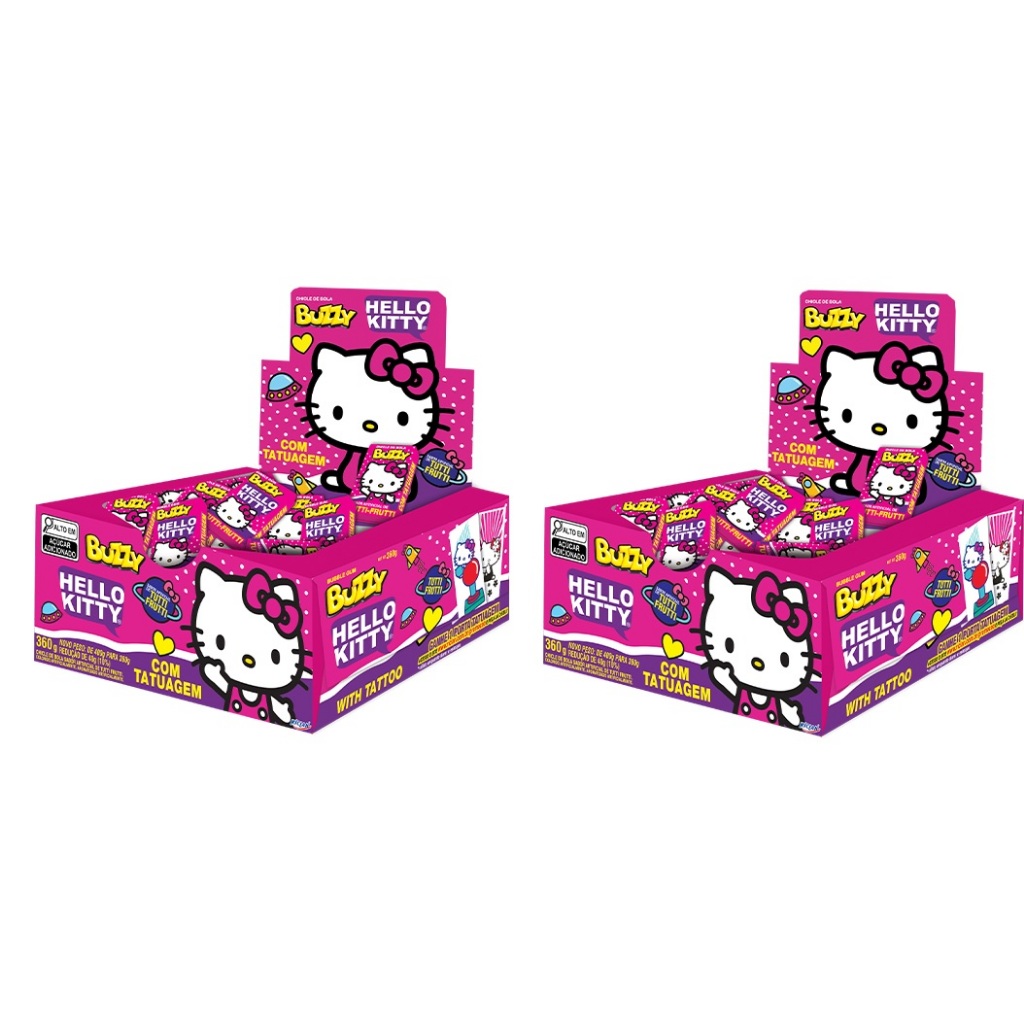 ☑️ KITS KIT 01 - ACOMPANHA (2 CX) DE CHICLETE SENDO (1 DE TUTTI FRUTTI E 1 DE HORTELÃ) KIT 02 - ACOMPANHA (2 CX) DE CHICLETE SENDO (2 DE TUTTI FRUTTI) KIT 03 - ACOMPANHA (2 CX) DE CHICLETE SENDO (2 DE HORTELÃ) 😋 Este chiclete de bola Buzzy da Hello Kitty vem no sabor de Tutti-Frutti e Hortelã, contem tatuagens da Hello Kitty, e é colorido e aromatizado artificialmente. ☑️ Ideal para fazer parte de uma festa temática, dia das crianças e festas de aniversário ou entregá-lo como lembrancinhas em um evento. ☑️ Sabor do Produto 🟡 Tutti-Frutti ou Hortelã (Escolha o seu preferido!!!) ☑️ Tatuagens 😀 Hello Kitty 📖 O porta tatuagem você poderá solicitar gratuitamente no site da Riclan, assim como é dito na embalagem do produto ☑️ Informações Adicionais 📦 Peso Líquido - 360 g - aproximadamente 90 unidades 🏭 Empresa - Riclan 📆 Validade: 04/2027 Chiclete Tutti Frutti e 02/2027 Chiclete Hortelã ❌ Não contém glúten ⚠️ Alérgicos: Contém derivados de soja 🚚 A Pronta Entrega 📦 Enviamos para todo o Brasil o mais rápido possível ⚠️ Antes de finalizar a compra, verifique se o endereço que receberá a encomenda está correto 😉 Boa compra e volte sempre !