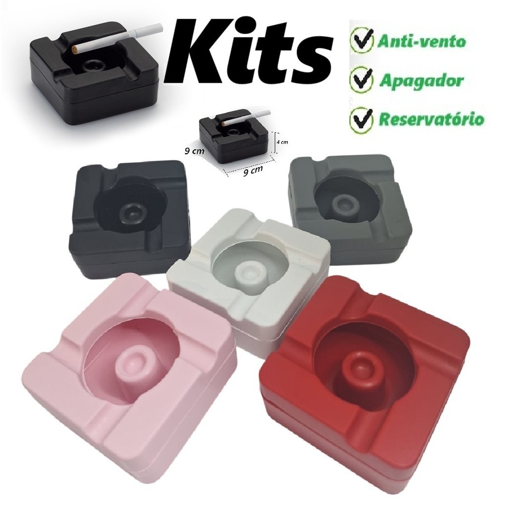 Kits Cinzeiros com Apagador central Prova de Vento Lavável Cores