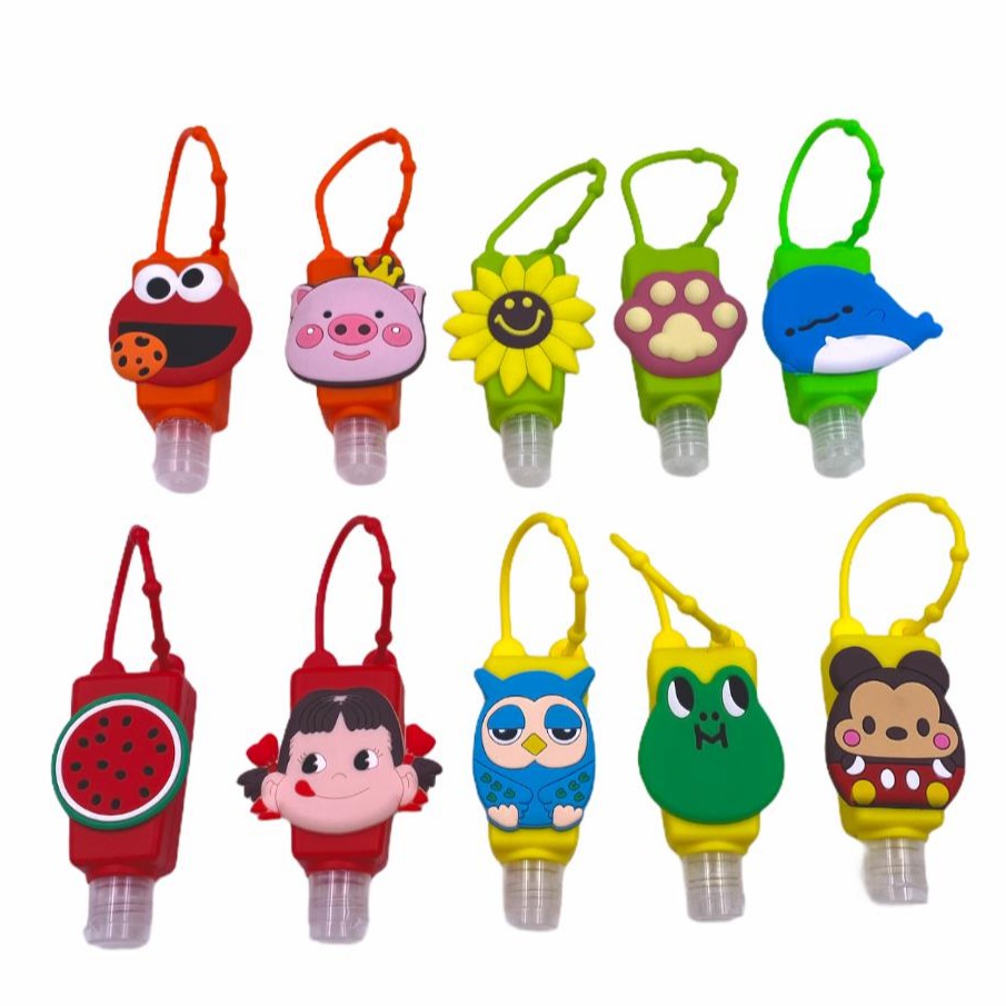 Kits com Frascos Porta Álcool Gel Mochila DESENHADO Chaveiro Silicone Personagens Variados