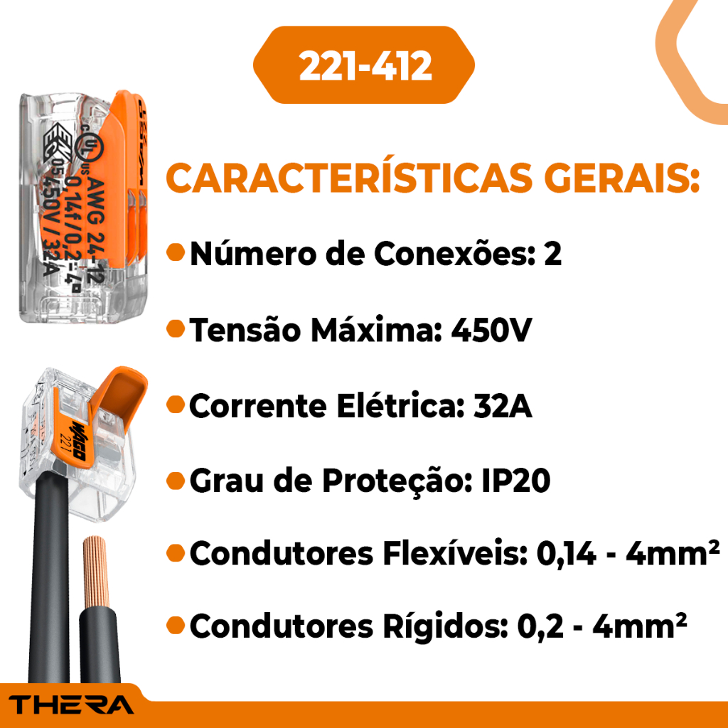 Kits em diversas quantidades de conectores Wago para: >Condutores de 0,14 a 4mm², até 32A 450V, Ideal para luminárias, Led, tomadas, emendas em geral. >Condutores de 0,5 - 6 mm², até 41A 450V, ideal para chuveiros, forgões elétricos, torneiras elétricas, emendas em geral. Apresentamos a nova linha de conectores automáticos WAGO 221, a solução mais avançada e confiável para a instalação elétrica em sua residência ou empresa. Com ele, você reduzirá em até 65% o tempo de instalação e manutenção, além de garantir máxima segurança e facilidade na manutenção. Ao contrário do uso de fita isolante, o conector automático WAGO não apresenta vazamentos de energia, o que economiza eletricidade e evita desarmes indevidos do dispositivo residual (DR). Além disso, a pressão da mola é constante e a área de contato é maior do que os conectores a parafuso tradicionais, garantindo uma melhor conexão elétrica e máxima passagem de corrente. Modo de usar: > Puxe a alavanca para cima, insira um condutor e empurre a alavanca para baixo, pronto. Rápido e seguro! Principais Vantagens: > Redução de até 10% no desperdício de fios e cabos nas obras; > Redução dos custos de retrabalho; > Invólucro transparente: Certifique a qualidade da conexão visualmente; > Mola de aço inoxidável: Não enferruja!; > Barra de condução de Cobre: Possui maior capacidade de corrente, ao contrário do latão utilizado nos demais conectores do mercado; > Prático para instalar: Não precisa de ferramentas, facilitando a instalação principalmente de chuveiros e luminárias (lugares altos); > Não requer reapertos como nos conectores à parafusos; > Não necessita do uso de terminais; > Compacto: Após a conexão, cabe dentro de qualquer caixa de passagem; > Ponto de teste: Possui abertura para inserir a chave teste sem ter que desmontar a conexão; > Certificado Internacionalmente. Dados elétricos: > 221-412: Duas vias - 32A / 450V - 4mm² > 221-413: Três vias - 32A / 450V - 4mm² > 221-415: Cinco vias - 32A / 450V - 4mm² > 221-420: Dez vias - 32A / 450V - 4mm² > 221-612: Duas vias - 41A / 450V - 6mm² > 221-613: Três vias - 41A / 450V - 6mm² > 221-615: Cinco vias - 41A / 450V - 6mm² > 221-2411: Duas vias em linha - 32A / 450V - 4mm² - Marca: Wago Trabalhamos com toda linha de conectores automáticos WAGO. Para kits com quantidades personalizadas, consulte-nos no campo de perguntas em horário comercial; Somos distribuidores oficial WAGO para todo o Brasil; Produto original, fabricado na Alemanha; Todos os pedidos acompanham NFe; Garantia de fábrica de 1 ano; Envio imediato!