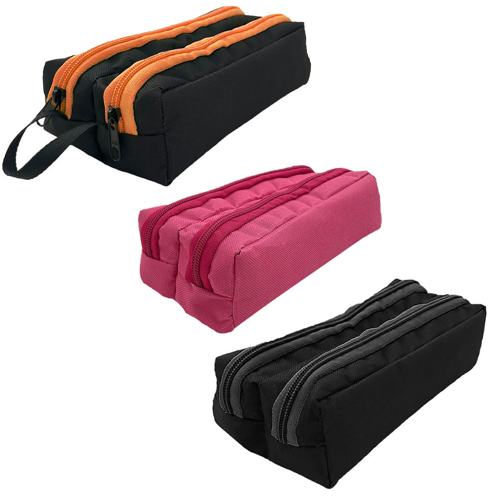 KITs de 2 e 3 Estojos Escolar Duplo 2 Divisões Nylon Liso Impermeável Varias Cores