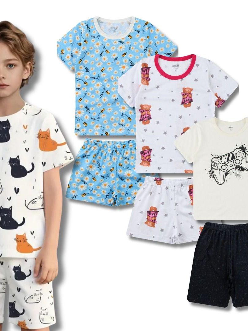 Kits de Conjuntos Sortidos Pijama Infantil Masculino Menino Juvenil Estampado Verão