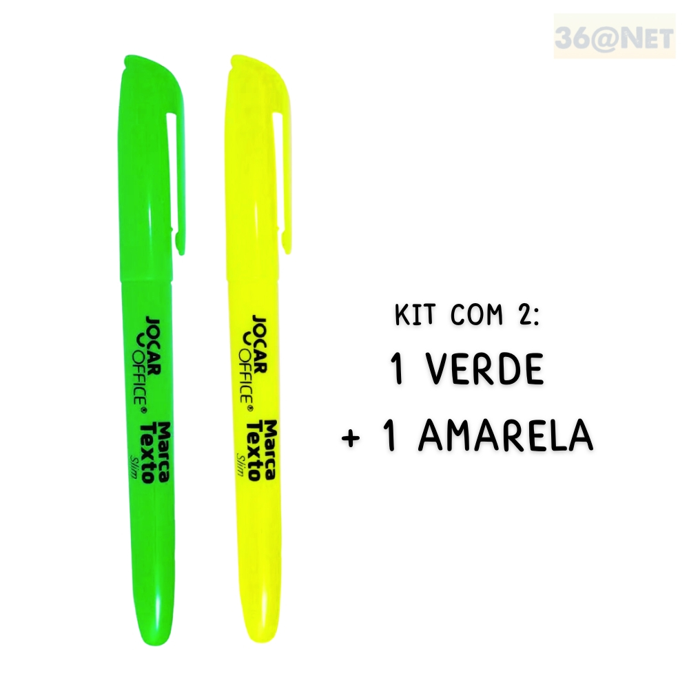 KITS COM 2 OU 3 MARCA TEXTO NEON SLIM JOCAR OFFICE Opções de Kits: - 1 Verde e 1 Amarelo - 1 Rosa e 1 Verde - 1 Amarelo e 1 Rosa - 1 Amarelo, 1 Rosa e 1 Verde CARACTERÍSTICAS DO PRODUTO: - Corpo na cor da tinta - Ponta chanfrada - Não tóxico - Com clip COMPOSIÇÃO : Corpo em resina termoplástica, ponta de fibra e tinta à base de água e corantes ENVIO RÁPIDO! Pedidos feitos de domingo a quinta são enviados em até 24 horas. Pedidos feitos às sextas, sábados ou feriados serão enviados no próximo dia útil. Ainda com dúvidas ??? Fale com nossos consultores pelo chat! Acesse agora a nossa loja e conheça todos os nossos produtos! Temos linha de Papelaria, Escolar, Escritório, Artesanato, Brinquedos, etc. *Imagens Meramente Ilustrativas