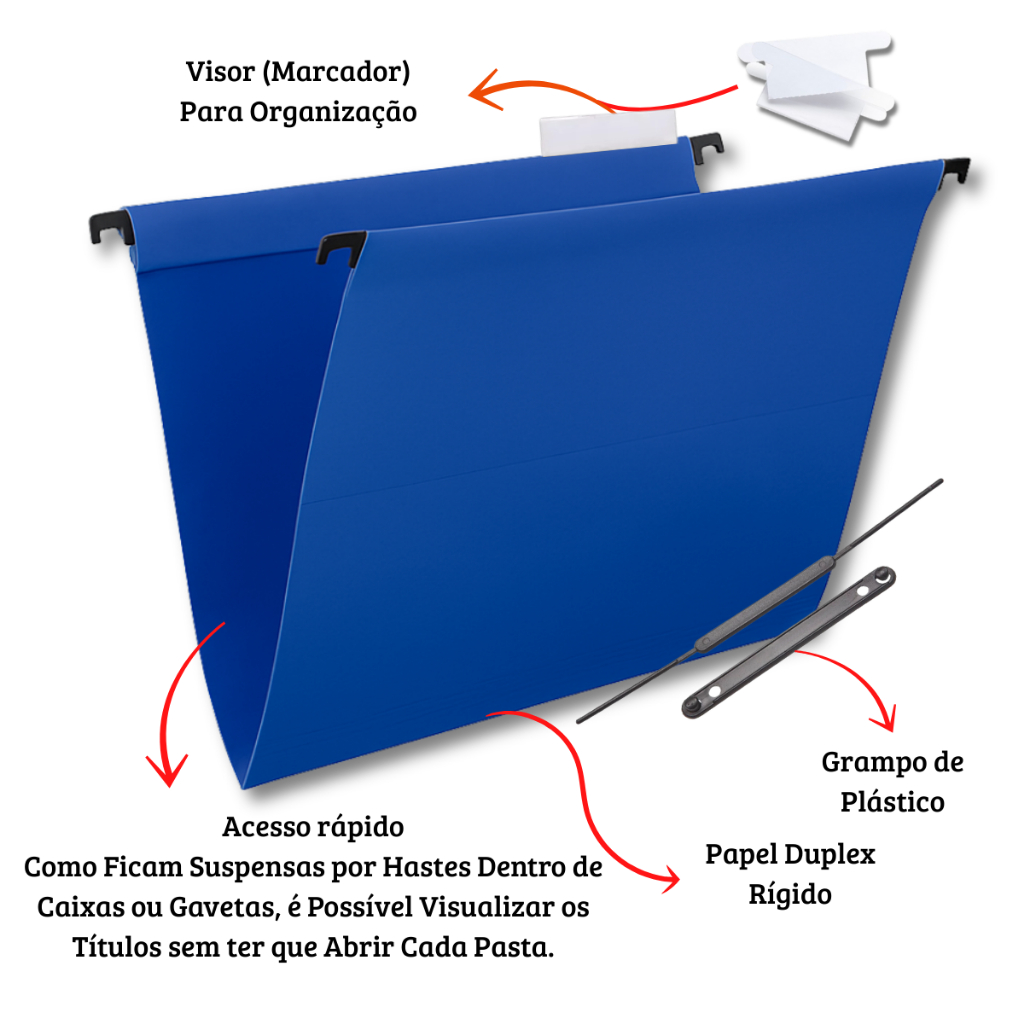 📁 Pasta Suspensa em Papel Duplex com Grampo e Visor – Interior da Mesma Cor Mantenha seus documentos organizados com qualidade, funcionalidade e um visual moderno com a nossa Pasta Suspensa em Duplex. Ideal para arquivos, escritórios, consultórios e escolas que precisam de organização prática e eficiente. As pastas suspensas acomodam uma grande quantidade de papeis, e são opção popularmente conhecida por oferecer facilidade a documentos frequentemente acessados. ✅ Características do Produto: Produzida em papel duplex rígido, material resistente e encorpado (plastificado). Colorida por dentro e por fora, com acabamento uniforme e aparência profissional. Vareta plástica com grampo já acoplada – ideal para prender documentos com furos. Visor completo transparente para etiqueta de identificação. Sistema suspenso com hastes laterais plásticas, compatível com arquivos de trilho. 📏 FICHA TÉCNICA: Comprimento: 36 cm Largura: 23,5 cm (Padrão A4 – comporta folhas sem dobrar) Embalagens: - Kit Com 5 Pastas Suspensas (Atenção: as pastas são todas da mesma cor). - Kit Com 10 Pastas Suspensas (Atenção: as pastas são todas da mesma cor). - Kit Com 20 Pastas Suspensas (Atenção: as pastas são todas da mesma cor). Obs: Temos opção de kits com 5 - 10 ou 20 unidades com cores sortidas. Fabricante: Polycart 🎯 Ideal para: Organização de documentos por etiquetas (contém visor) Arquivos em escolas, empresas, clínicas, escritórios e cartórios Uso diário com excelente custo-benefício 🎨 Cores disponíveis: Preta, Azul, Branca, Amarela, Vermelha, Verde e Sortida. (consulte a disponibilidade antes da compra) ⚠️Atenção - A tonalidade das cores pode variar de acordo com sua tela e iluminação do ambiente. ✔ Organização prática, acabamento profissional e estrutura firme para o dia a dia! Adicione agora ao carrinho e leve mais praticidade para sua rotina! GARANTIA & ENVIO • Garantia de 7 dias para troca ou devolução • Produto à pronta entrega • Enviamos para todo o Brasil com nota fiscal A loja Beco das Utilidades agradece a sua compra! PERGUNTAS E RESPOSTAS: - GOSTARIA DE OUTRA QUANTIDADE, COMO FAÇO? R: Nos envie sua solicitação no campo FALAR COM O VENDEDOR e encaminharemos o link do anúncio com a quantidade desejada. - POSSUEM OUTROS MODELOS DE PASTAS? R: Sim! Temos diversos modelos de pastas.
