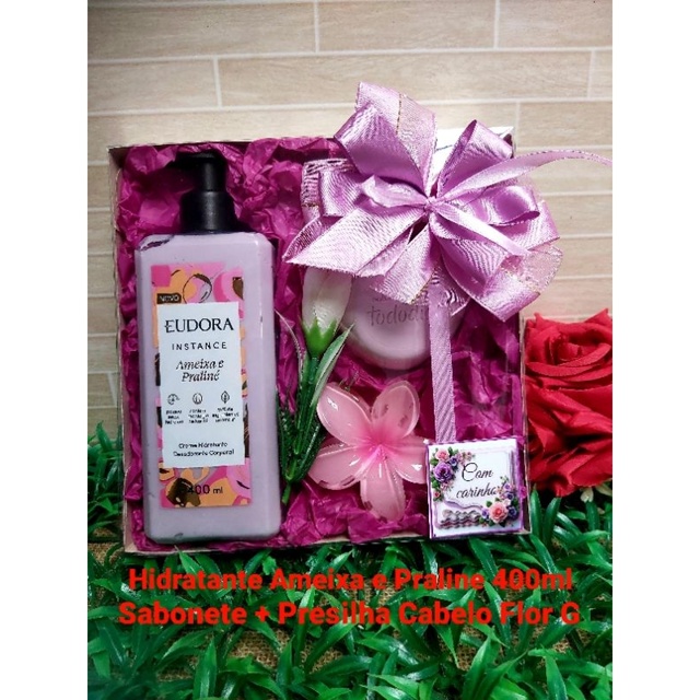 Embalagem linda + produtos incríveis = presente perfeito! Kits Presentes Femininos com Hidratantes Natura, Eudora e o Boticário de 400ml Todos produtos originais e na validade Acompanham Sacolas da marca Opção 1! Presente Ameixa Negra (01 Hidratante Aneixa negra 400ml+ 2 Sabonetes+ Caixa decorada Opção 2! Presente Natura Tododia Flor de Gengibre e Tangerina 400ml ( 01 Hidratante Batura Flor de Gengibre e Tangerina 400ml+ Toalha de Rosto+ Caixa presenteável) Opção 3! Presente Eudora Cereja e Amendoas (01 Hidratante Eudora Cereja e Amêndoas 400ml+ Sabonete + Presilha Cabelo Flor Grande+ Caixa decorada) Opção 4! Presente Cuide-se Bem Boa Noite o Boticário ( 01 Hidratante Cuide-se Bem Boa Noite 400ml+ Sabonete + Presilha Cabelo Flor Grande+ Caixa presenteável) Opção 5! Presente Natura Tododia Algodão ( 01 Hidratante Natura Tododia Algodão 400ml+ 2 Sabonetes+ Caixa decorada) Opção 6! Presente Eudora Instance Baunilha (01 Hidratante Eudora Baunilha 400ml+ 2 Sabonetes + Caixa decorada) Opção 7! Presente Nativa Spa Ameixa o Boticário ( 01 Hidratante Ameixa 400ml + 2 Sabonetes)