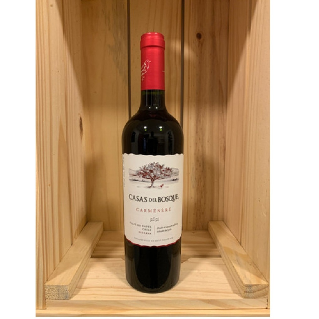 O Casas del Bosque Reserva Carménère é um vinho tinto chileno produzido pela vinícola Casas del Bosque, localizada no Valle de Rapel, uma região reconhecida pela excelência na produção de Carménère. Uvas e Vinificação: Uva: 100% Carménère Vinificação: Colheita manual Fermentação tanques de aço inoxidável com leveduras selecionadas sob temperatura controlada Envelhecimento 10% da mistura final em barricas de carvalho francês por um período de 12 meses Características Sensoriais: Cor: roxo intenso com reflexos violetas. Nariz: notas de tabaco e especiarias, pimentão verde combina bem com as especiarias do barril. Boca: há um equilíbrio e coerência com os aromas do nariz. Estilo do Vinho: Fino Tinto Seco, voluptuoso, maduro e com taninos macios. Harmonização: Culinária Chilena que contém: cebola, pimentão e passas; Também com preparações contendo molho de soja, incluindo carne de porco, pato ou vegetais; Empanadas de Carne; Berinjela Parmegiana. Observações Gerais: Vinho emblemático de Valle do Rapel, Chile Deve ser servido a uma temperatura entre: 16°C à 18°C Potencial de guarda: 05 anos Informações Adicionais: Produtor: Casas del Bosque País: Chile Região: Valle do Rapel Teor Alcoólico: 14% vol. Volume: 750ml