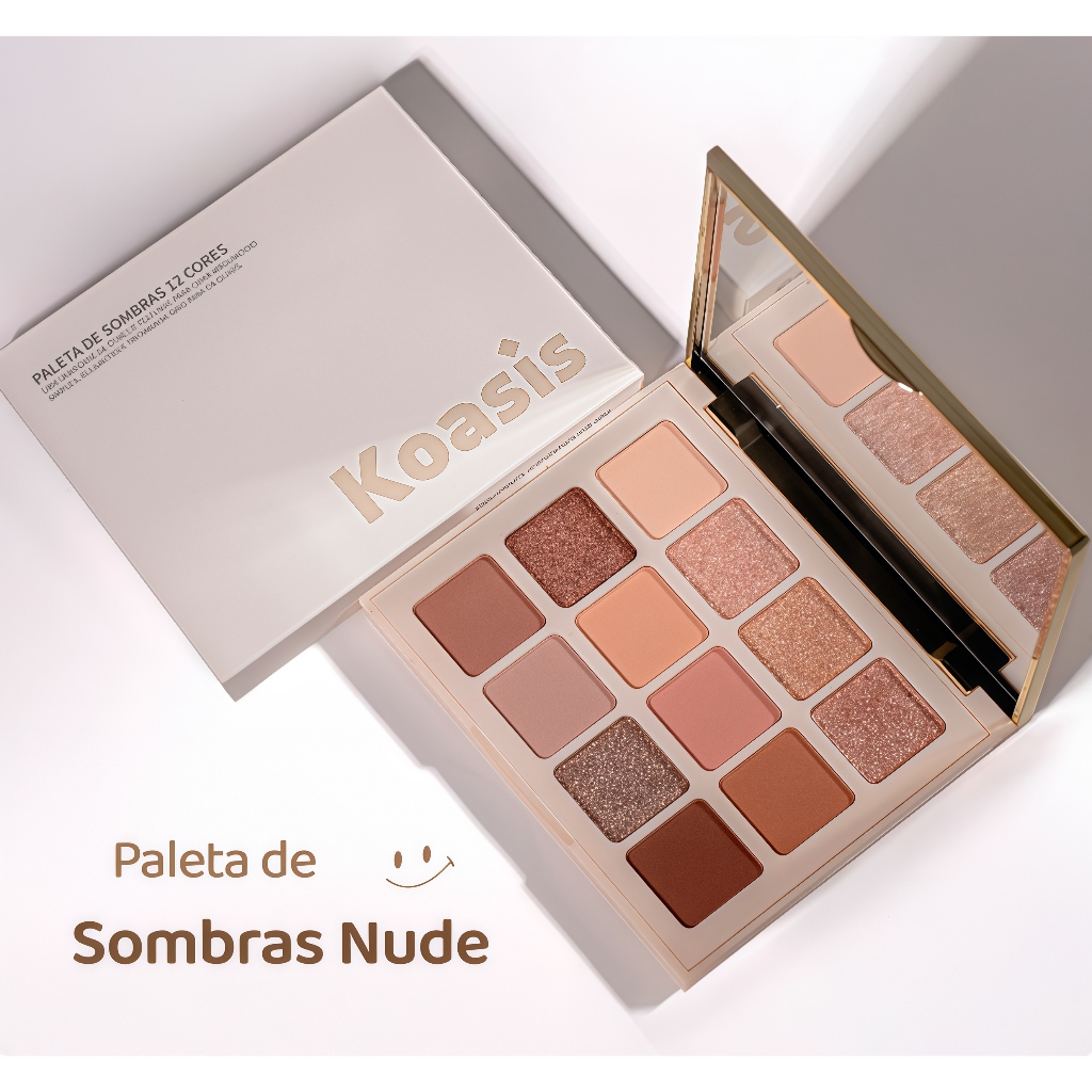 Koasis Paleta 12 Cores Sombras Nude - Fosca/Brilhante Tons Cacau Avelã
