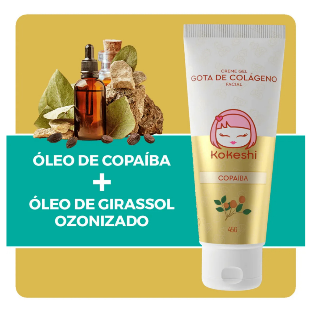 Kokeshi Creme Gel Hidratante Facial Gota De Colágeno(Oleo de Girassol Ozonizado e Oleo de Copaiba)
