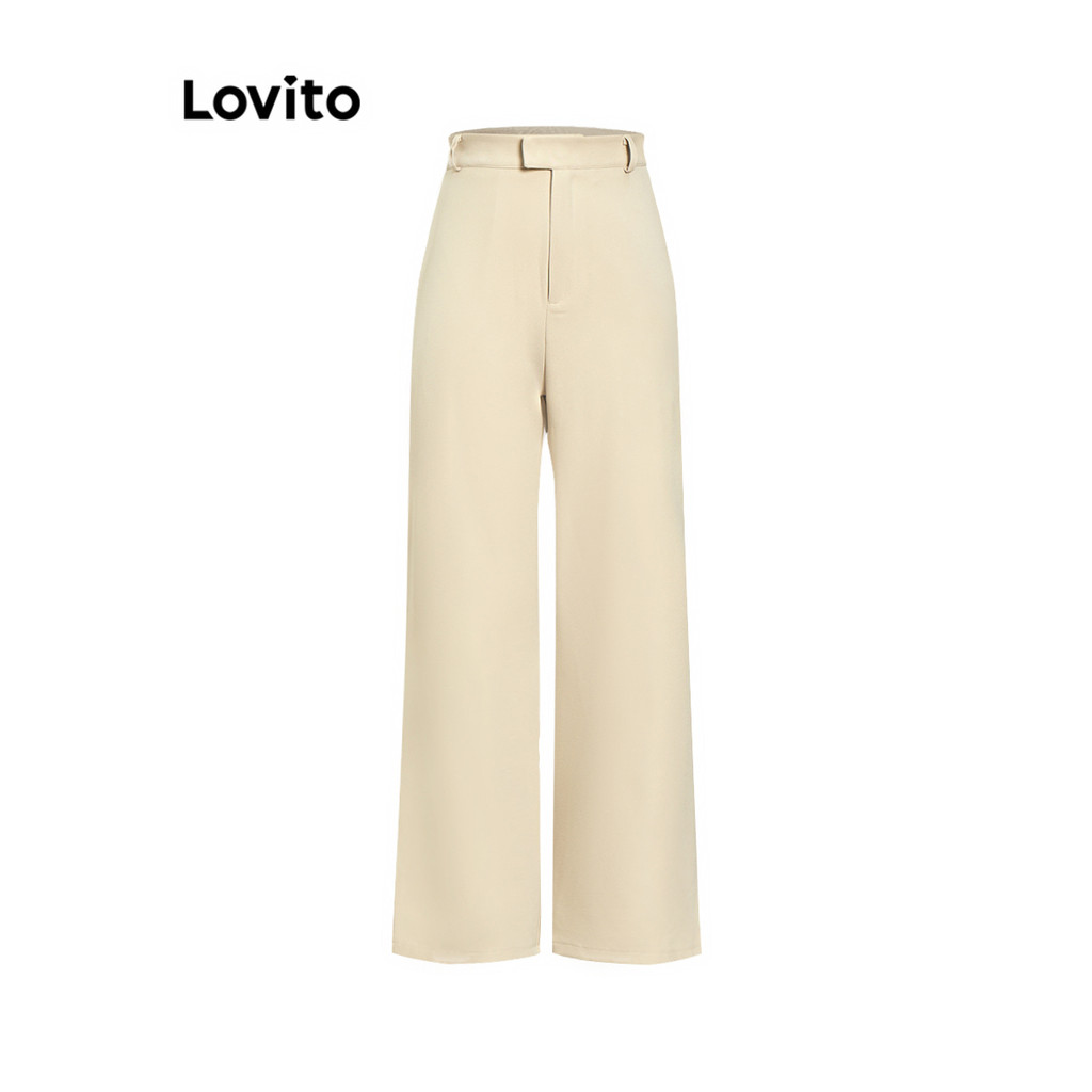 (KOL‘s pick) Lovito Casual Calça Feminina Lisa com Bolso L67AD135 (Cáqui)