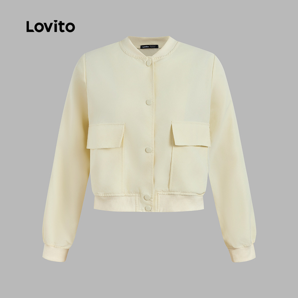 (KOL‘s pick) Lovito Jaqueta feminina casual com botão liso frontal LNL52139