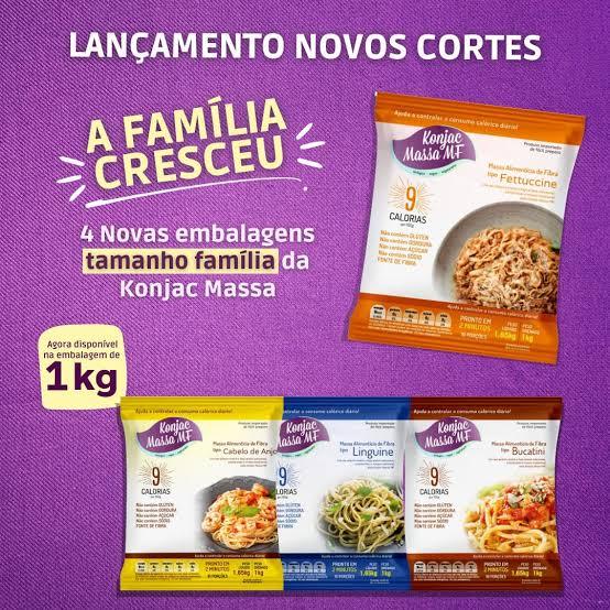 Comida Fitness, Sem Glúten, Vegano KONJAC Massa MF - 1Kg As embalagens de 1Kg da marca Konjac Massa MF são ideais para refeições em famílias e grandes grupos, comemorações ou até mesmo para o preparo de diversas marmitas semanais. Com um quilo, você atende até 10 pessoas de uma única vez ou pode simplesmente fracionar para diversos usos! Konjac Massa MF é uma marca de produtos de origem vegetal feita de fibra solúvel, possui zero teor de carboidrato, zero teor de açúcar, apenas 9 calorias em cada 100g, não contém glúten e lactose. Armazenagem: Após aberto, descarte toda a água e lave em água corrente. Mesmo que não tenha o consumo total dos produtos, ela deve ser guardada na geladeira com um pouco de água filtrada para manter o produto hidratado até uma semana. Dica: caso você queira preparar várias marmitas, já com o molho, também poderá ser armazenada na geladeira junto ao preparo. Preparação : apenas 2 minutos. Embalagem : 1Kg drenado. Modo de preparo : Abra a embalagem e descarte a água. Adicione o conteúdo da embalagem ao molho e ingredientes de sua escolha. Composição: Água Purificada, Fibra Solúvel De Glucomannan Biológico e Fibra De Aveia Biológica (4.4%) SEM GLÚTEN E SEM LACTOSE, VEGANO, ZERO CARBOIDRATOS Observação: Valor correspondente a 1 (um) pacote de massa.