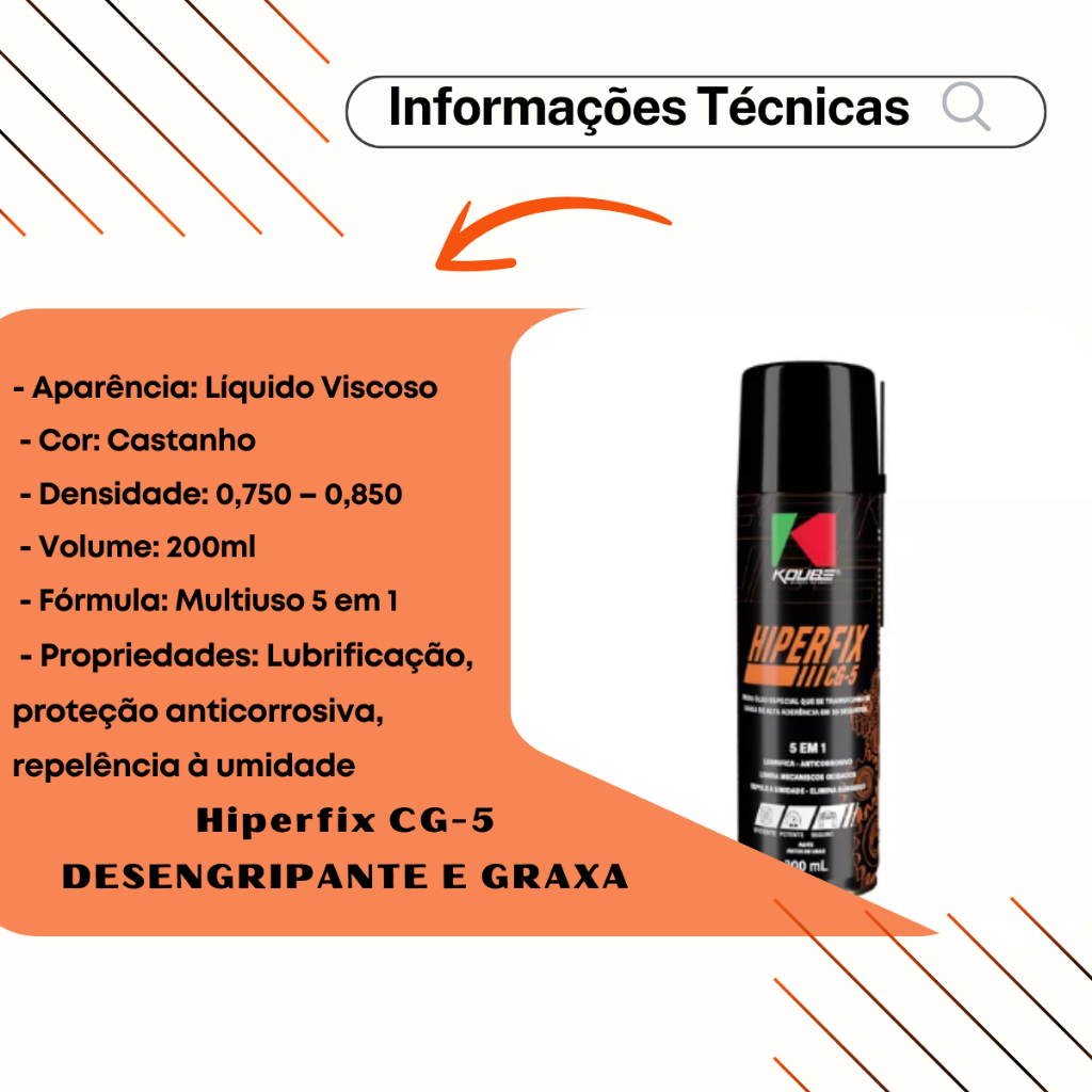 Koube Hiper Fix CG5 Spray Lubrificante Desengripante 5 Em 1 Oleo Graxa 200ml