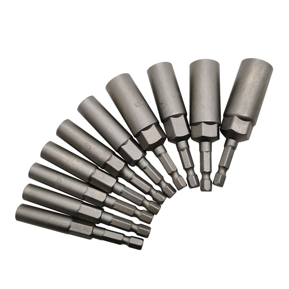 Krachtige 10 Peças 80mm Chave de Fenda Magnética de Energia Elétrica 1/4" Haste Sextavada Soquete Bit CRV 5,5-14mm