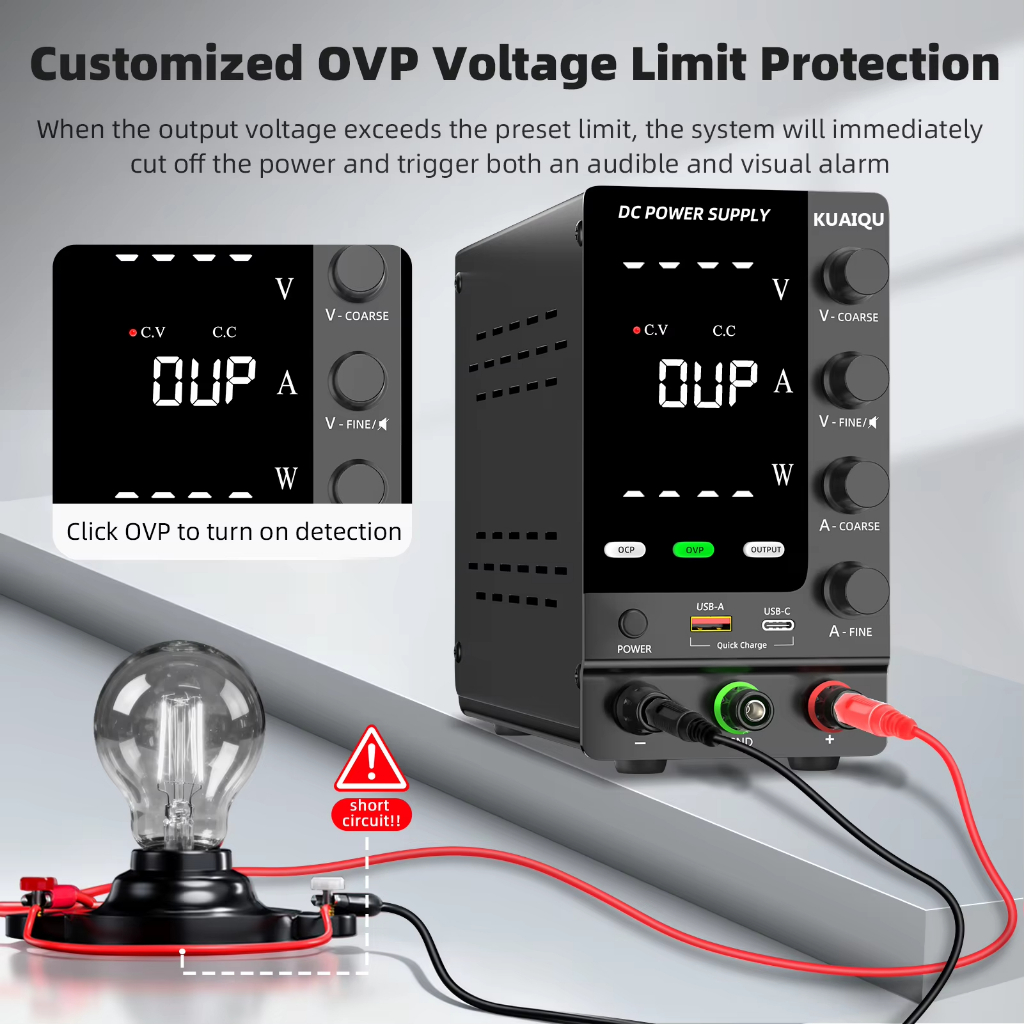 KUAIQU Fonte de Alimentação de Bancada 30V 10A Voltti SPS-C3010S 60V 5A 120V Display de 4 dígitos e OCP&OVP USB tipo-C