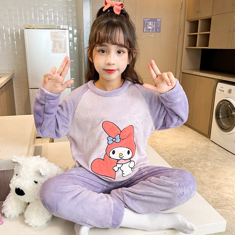 Kuromi Winter Children Pajamas Kid Conjunto De Roupa De Dormir Espessa Adolescentes Meninas Flanela Manga Longa + Calças