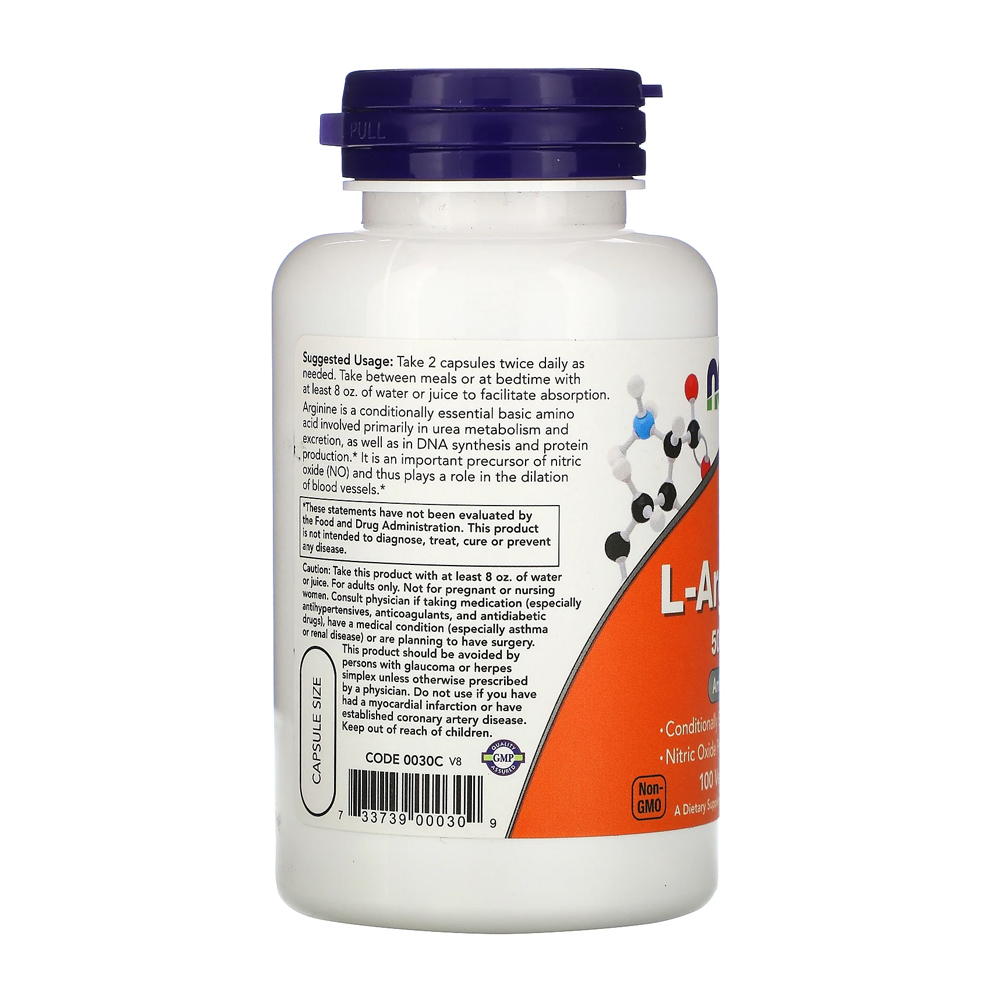 L-Arginina 500mg Now Foods 100 Caps + Porta Cápsulas