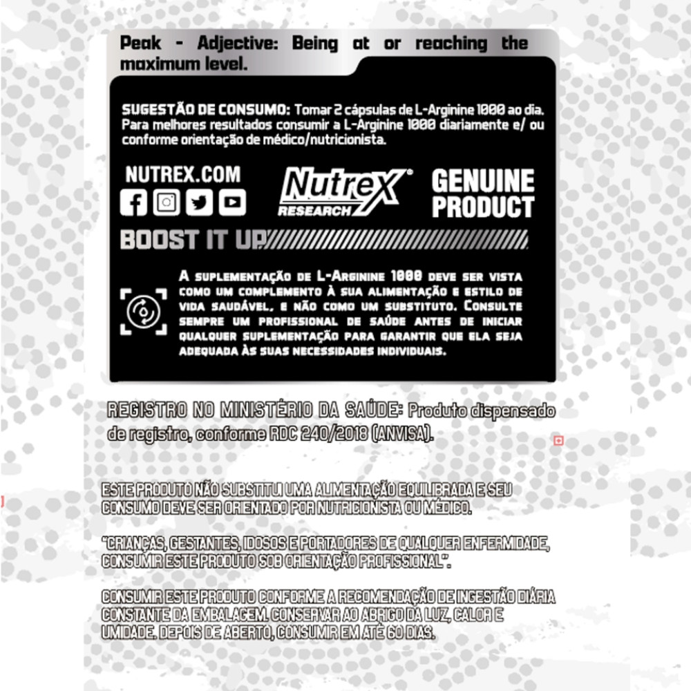 A L-Arginina da Nutrex é um suplemento de alta qualidade, ideal para melhorar o fluxo sanguíneo e o desempenho físico. Reconhecida por promover a produção de óxido nítrico, é perfeita para atletas que buscam otimizar força, resistência e recuperação muscular. Nutrex garante pureza e eficácia em cada dose.