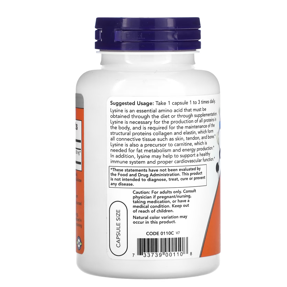 L-lisina 500mg Now Foods L-Lysine 100 Caps + Porta Cápsulas