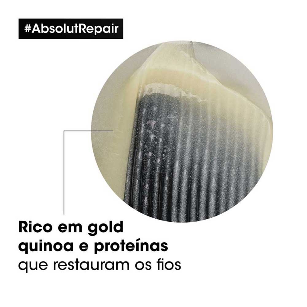 Cabelos danificados e quebradiços? O Shampoo Reparador Absolut Repair Gold Quinoa foi desenvolvido especialmente para cabelos danificados! Ele promove uma reparação sob medida e reconstrução instantânea dos fios, trazendo mais brilho, maciez e uma hidratação profunda sem pesas os seus cabelos. Seus principais ingredientes, a Quinoa Dourada e Proteína Hidrolisada de Trigo, criam um filme protetor que mantém as cutículas seladas, retendo as propriedades restauradoras dentro da fibra capilar. Graças a sua tecnologia de co-emulsão, suas moléculas são 50% menores que os tracionais. Com isso, os ingredientes ativos penetram profundamente na fibra, formando um filme fino e homogêneo e aperfeiçoando a superfície do cabelo. O resultado é um cabelo com 77% menos danos, 7x mais brilho e com um toque leve e macio. Indicado: Para cabelos danificados e quebradiços. Resultado: Reconstrução dos fios, Redução de danos e Cabelos mais brilhosos. Tecnologia: GOLD QUINOA + PROTEÍNA: Tecnologia rica em quinoa dourada: possui estrutura interna com 9 aminoácidos essenciais que reparam os fios(córtex). Além disso, tem ação antioxidante da vitamina E, que nutre e protege os fios dos danos externos devido à presença do complexo B. PROTEÍNA DE TRIGO HIDROLIZADA: Proteína vegetal que sela as cutículas, retendo os nutrientes e a água dentro da fibra, mantendo a hidratação dos fios. Sobre a Linha: A L?Oréal Professionnel, marca de Tratamento Profissional mais vendida no Brasil, apresenta o novo Absolut Repair Gold Quinoa Protein, que atinge a estrutura mais profunda da fibra capilar e promove a reestruturação do fio. Graças a ação das proteínas vegetais de alta afinidade com a proteína natural dos fios, a nova tecnologia permite um preenchimento das áreas que perderam massa capilar por algum dano, desde o mais profundo interior da fibra até as cutículas. Além disso, forma um filme de força e proteção contra novos danos. Tudo isso entregando também muita maleabilidade, maciez e brilho, sem rigidez e sem pesar os fios. Sobre L?Oréal Professionnel Desde 1909, a L?Oréal Professionnel contribui com os produtos mais inovadores para os cabeleireiros, testados e aprovados pelos grandes nomes do mercado da beleza mundial. Estão presentes nos maiores desfiles de moda e trabalham lado-a-lado com alguns dos mais talentosos hairstylists em bastidores e com os maiores salões. Desenvolvem produtos que se adaptam às mais altas exigências dos profissionais que esperam contar com os melhores produtos para atingirem a sua melhor performance no melhor tempo.