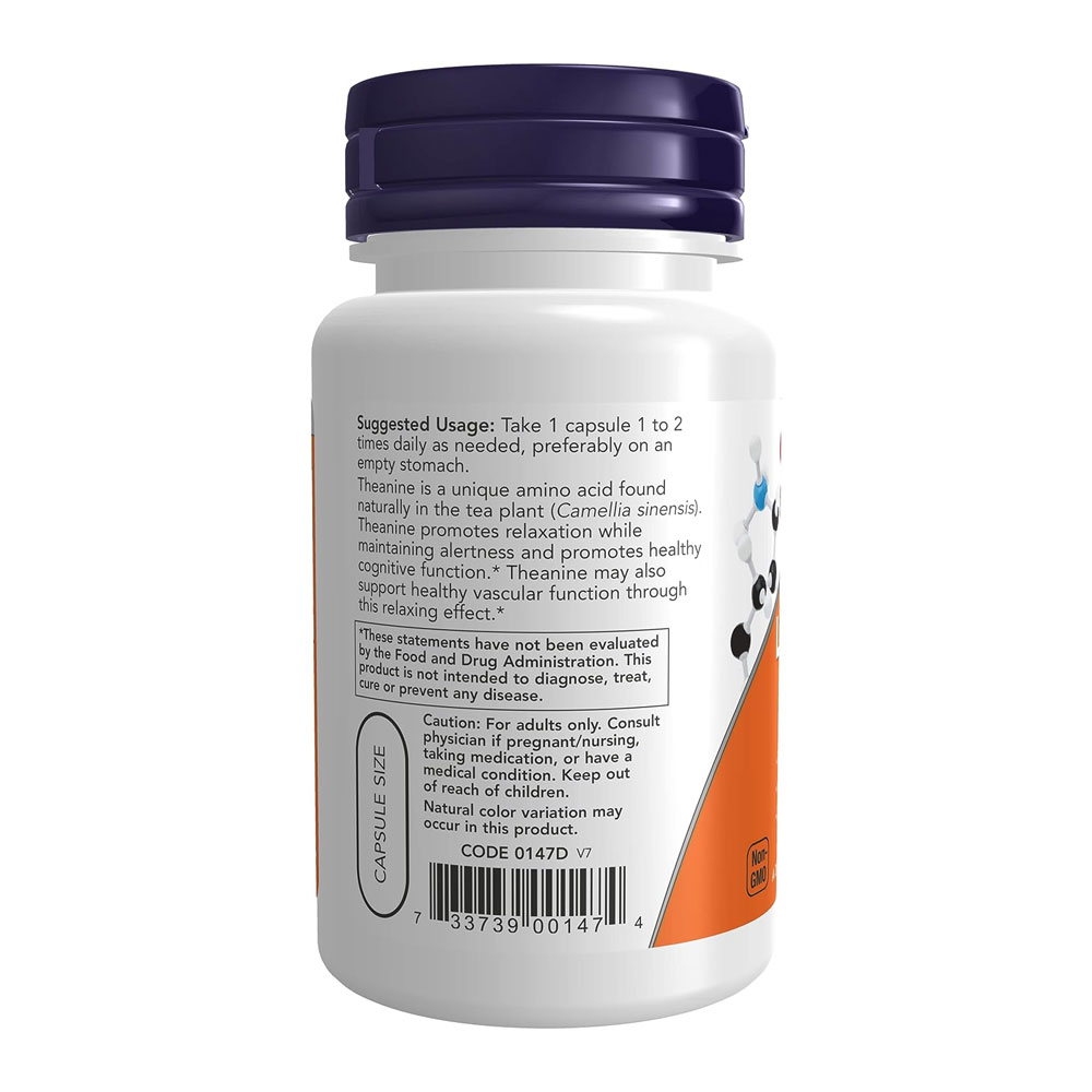 L-teanina 200mg Now Foods L-Theanine 60 Veg Cáps Importado + Porta Cápsulas