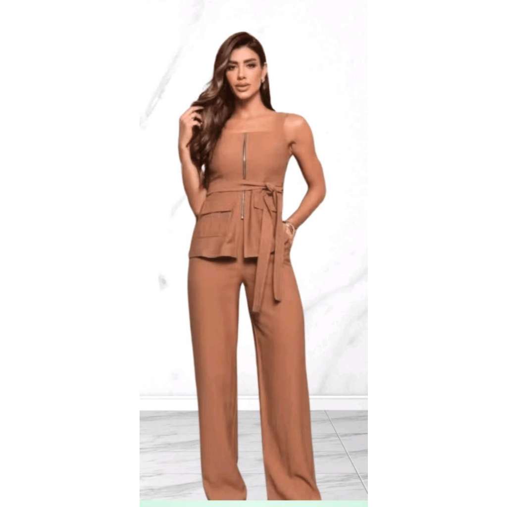 L158 Body Conjunto Feminino Marrant Colete com Ziper cinto e Calça