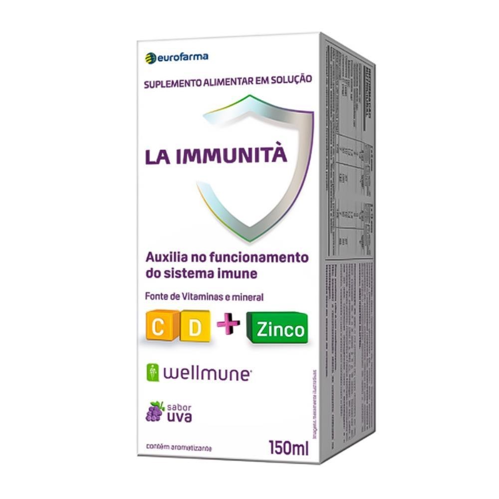 La Immunitá ajuda com: - A suplementação de vitaminas e minerais para o fortalecimento do sistema imune. Sabor uva.