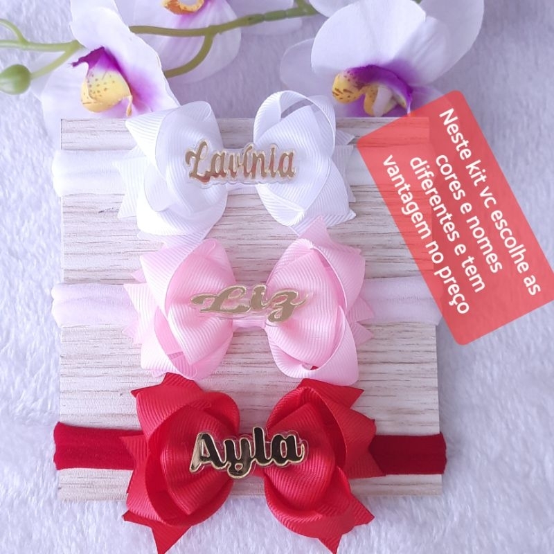 Lindo Laço feito com muito amor e carinho para seu bebê. Feito com material de ótima qualidade para que sua bebê fique muito linda. OBS: APÓS A COMPRA INFORME O NOME E AS CORES DESEJADAS PELO CHAT, NA FALTA DESSA INFOMAÇÃO TEREMOS QUE ENVIAR SEM O NOME DA CRIANÇA.