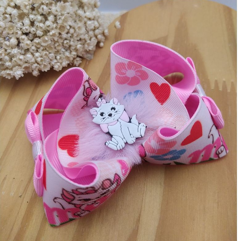 Laço de Cabelo Infantil da Gatinha Marie Temos as opções no bico de pato, Faixa e Tiara. Laço mede 11 cm. Bico de pato mede 5,5 cm Faixa slim bem confortável e flexível. Tiara (arco de Dentinho)