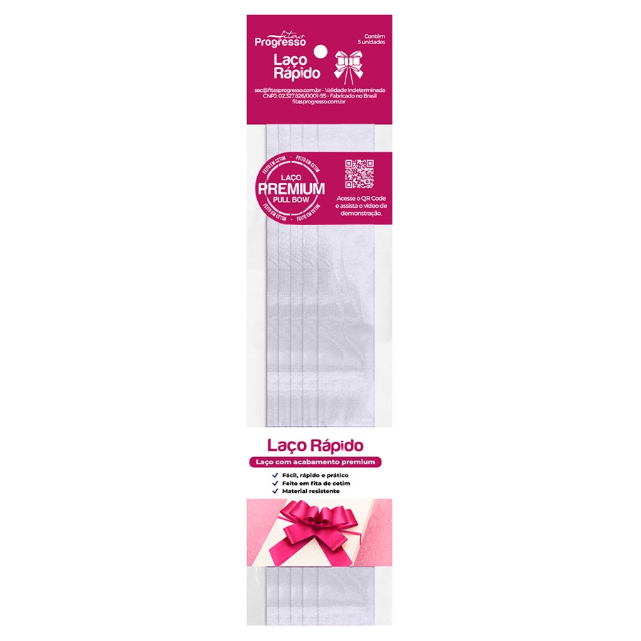 Laço Fácil de Fita de Cetim - Branco - 22mm - 5 unidades - Progresso - Rizzo