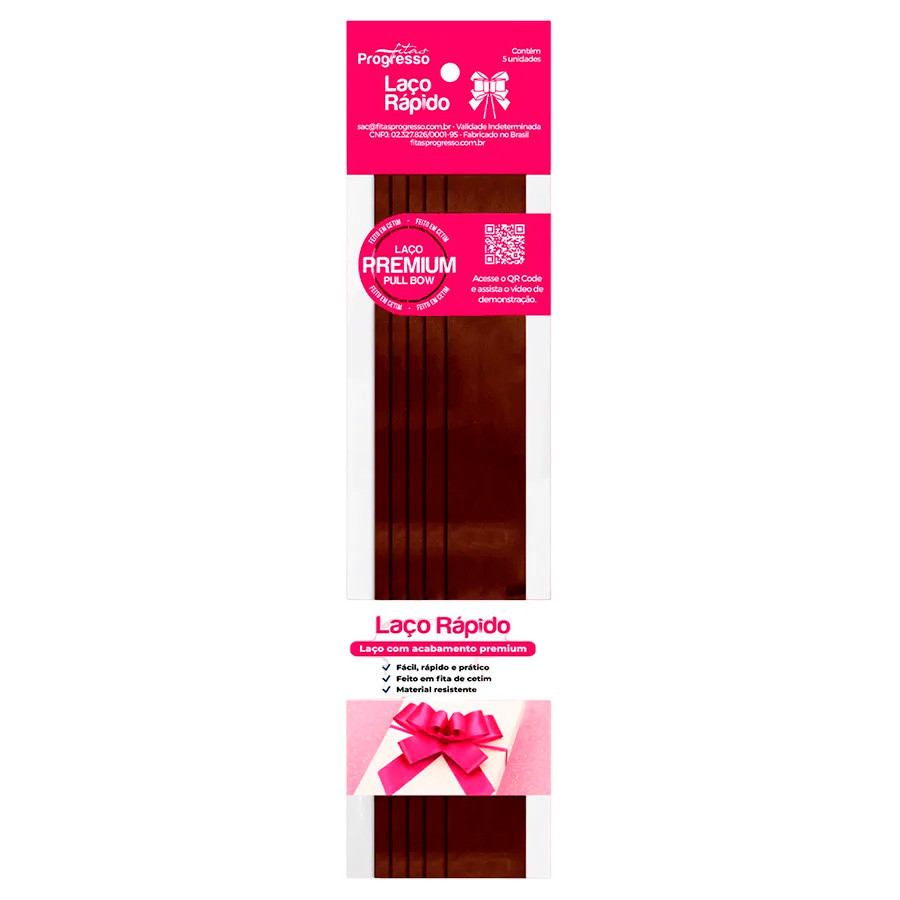 Laço Fácil de Fita de Cetim - Marrom - 22mm - 5 unidades - Progresso - Rizzo