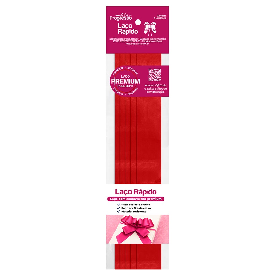 Laço Fácil de Fita de Cetim - Vermelho - 22mm - 5 unidades - Progresso - Rizzo