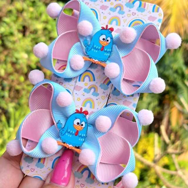 | Laço galinha pintadinha vermelha e azul - bico de pato/ faixa de bebê | R$ 14,90 | — | 4.9/5 | 5 |