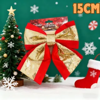 O item Laço Natalino 15Cm Vermelho E Dourado Luxo Elegante Para Árvore De Natal Decorativa está disponível na subcategoria Artigos de Festa (de Casa e Decoração), disponível na Shopee Brasil por R$ 14,99 (50% de desconto sobre o preço original de R$ 29,98).