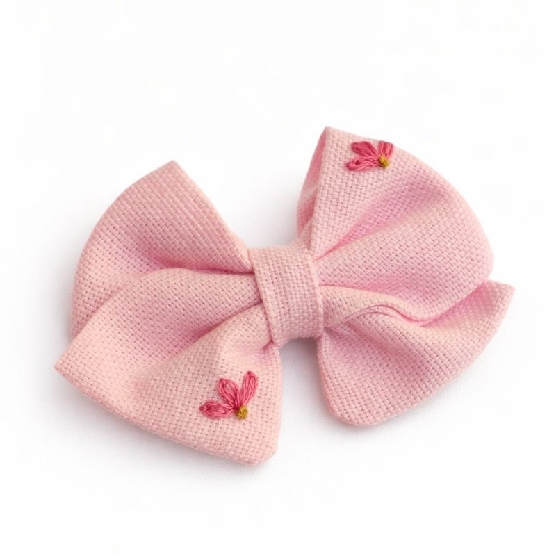 Laço em Linho Bordado à Mão – 7cm Delicado e sofisticado, nosso laço é confeccionado em linho de alta qualidade, com bordado feito à mão, trazendo um toque artesanal único e especial a cada peça. Com aproximadamente 7cm, ele possui o tamanho ideal para complementar penteados com charme e elegância, seja no dia a dia ou em ocasiões especiais. Você pode escolher a melhor opção para sua pequena: 🎀 Bico de pato – prático e firme para todos os tipos de cabelo 🎀 Meia de seda – confortável e delicada, ideal para bebês Cada laço é produzido com muito carinho, pensando nos mínimos detalhes para oferecer beleza, conforto e exclusividade. 💛 Perfeito para compor looks delicados e cheios de personalidade!