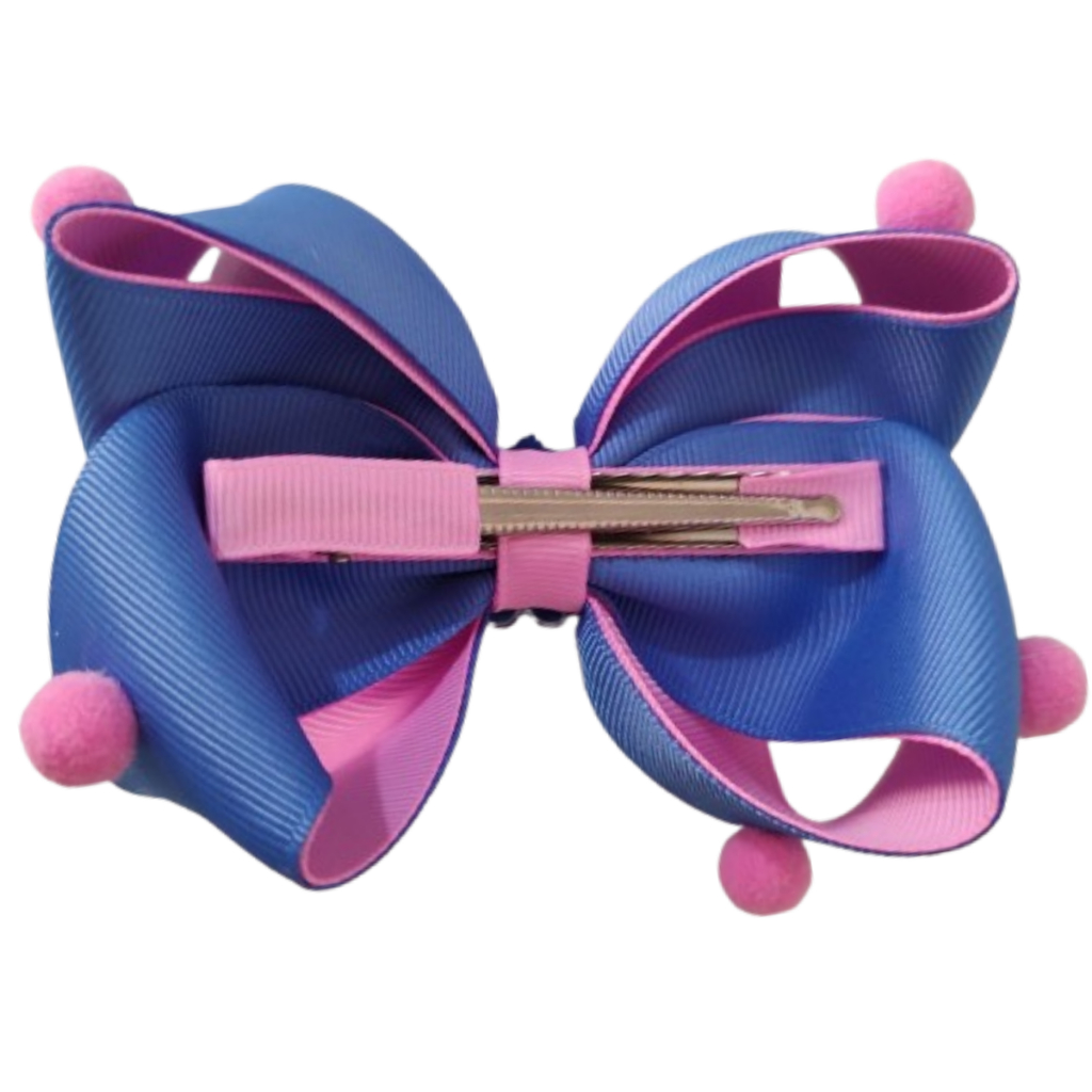 Laço Stitch Infantil para Meninas - Azul - Bico pato reto 7cm semi encapado - Laço aproximadamente 10cm com fitas - Aplique emborrachado com pompons. - Cor: Fita Azul com Rosa