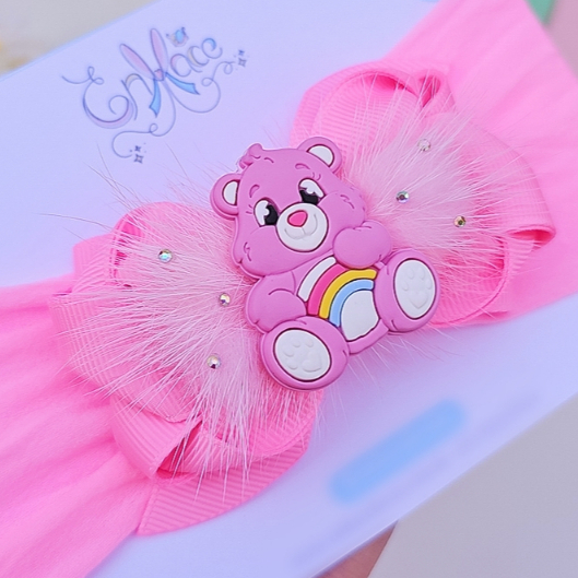 Laço Ursinhos Carinhosos Rosa Presilha infantil Faixa Larga Turbante de Bebê, Acessório de Cabelo