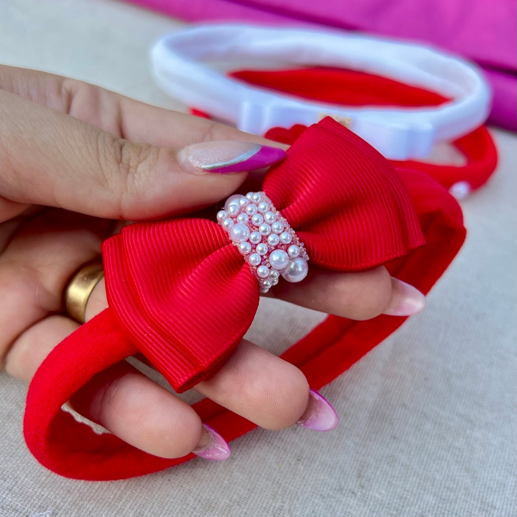 Laços de Cabelo Infantil para Bebê Luxo - Conjunto 3 Laços Vermelho com Pérolas - 005