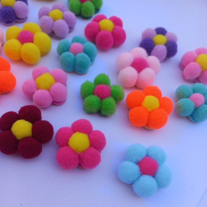 LAÇOS FLORES POMPOM | ADESIVOS - 10 UNIDADES