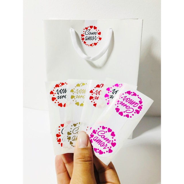 Lacre adesivo para sacola "com amor"