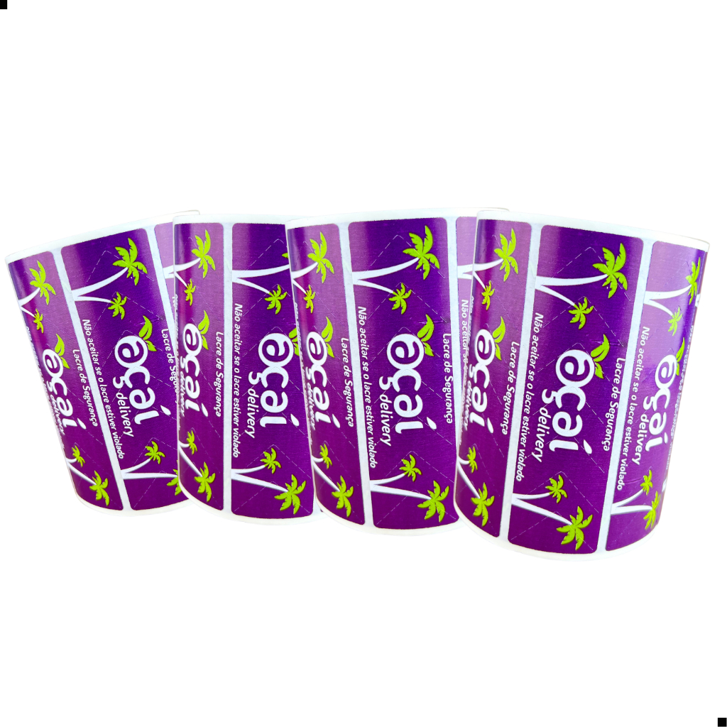 "Lacre Delivery para Açai 3 Milheiros O Lacre para Delivery é produzido em papel Couchê, no formato retangular e fornecido em rolos de Etiquetas Adesivas com corte de segurança, para Lacrar embalagens de Delivery, sacolas para lanche, caixas de pizza, embalagens de açaí, com estampas temáticas ou possibilidade de Personalização com sua Logomarca. O papel possui cola de 24 gramas, especial para entregas quentes, naturais ou geladas. O Lacre para Delivery foi testado e homologado por diversas redes de loja do Brasil e até por Franquias de fora do País. Principalmente no seguimento de Pizzaria. CARACTERÍSTICAS: PAPEL: COUCHÊ ADESIVO COLA: 24 GRAMAS LARGURA: 10 CM ALTURA: 3 CM ROLO COM 970 ETIQUETAS ADESIVAS 100X30 MM CORTE DE SEGURANÇA: SIM ESTAMPA: LACRE PARA AÇAI QUANTIDADE: 3 ROLOS DE ETIQUETAS"