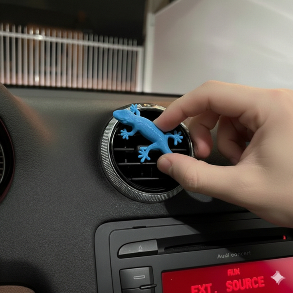 Largartixa para decoração, saída de ar/difusor carro. Deixe a interna do seu carro com mais estilo. - Feito em ABS PREMIUM. - Não possui aroma. ENVIO IMEDIATO! Produto possui trava em baixo, não é com cola.
