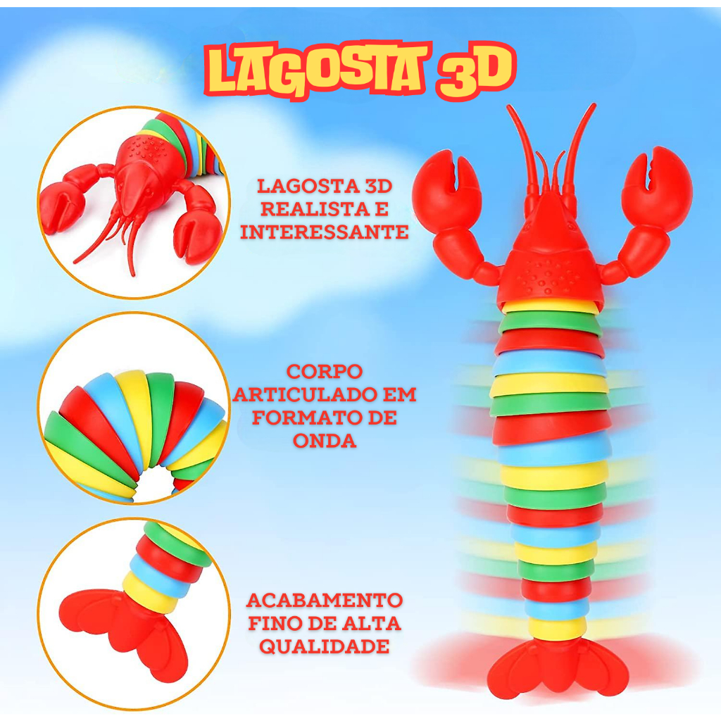 Lagosta 3D Brinquedo Sensorial Fidget Toy Articulada Colorida Com Led Infantil