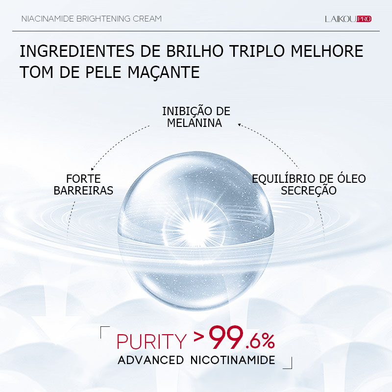 LAIKOU 99,6 % Niacinamida Creme Facial Clareador Manchas Hidratante Pele Brilhante 30g