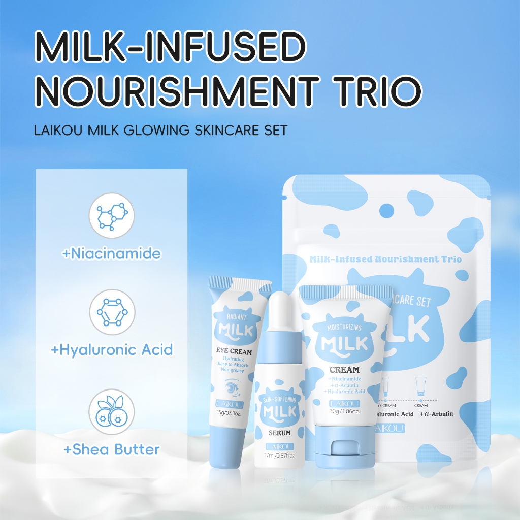 LAIKOU ✨ Conjunto De Leite Glowlaikou Rotina 5 Em 1 : Iluminar O Rosto + Olhos Depuff + Lábios Rechonchudos | Cuidado Co