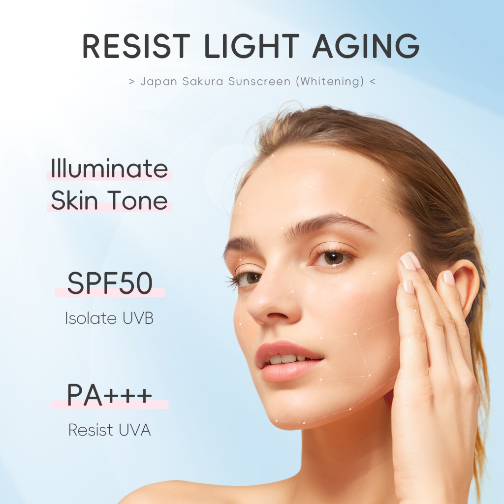 LAIKOU Protetor Solar Facial Sakura Proteção Radiante Contra Raios UV SPF50 PA + Creme Branqueador Sunblock 50g