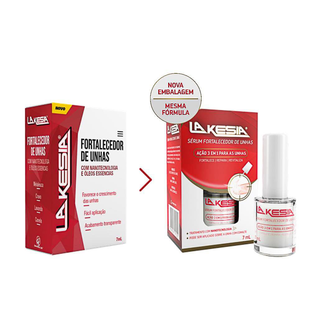 LAKESIA FORTALECEDOR DE UNHAS Com nanotecnologia e óleos essenciais. Favorece om crescimento das unhas. Fácil aplicação. Acabamento transparente. Modo de usar: Aplicar La Kesia Esmalte duas vezes ao d