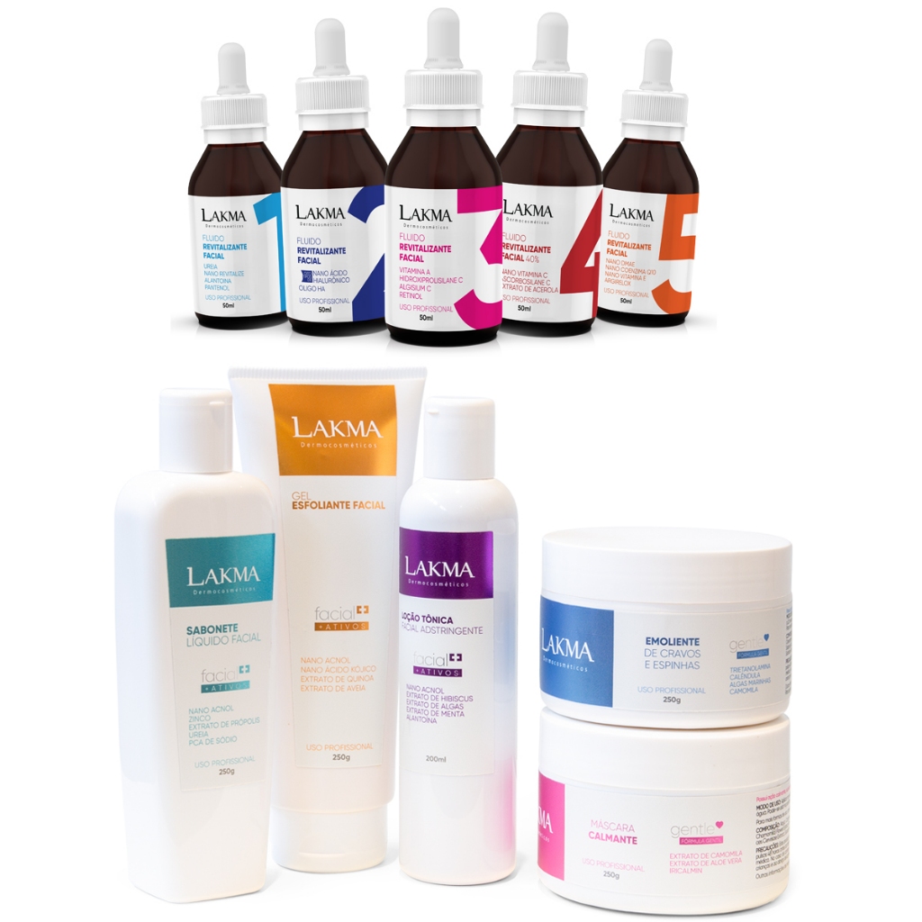 Lakma Kit Limpeza De Pele Profunda 5 Itens + Kit Fluidos Revitalizantes Faciais 5 Itens