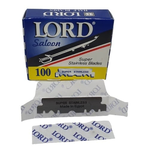 Lâmina Barbear LORD AZUL (meia) - 100 lâminas Navalha Cortada Aço Inox