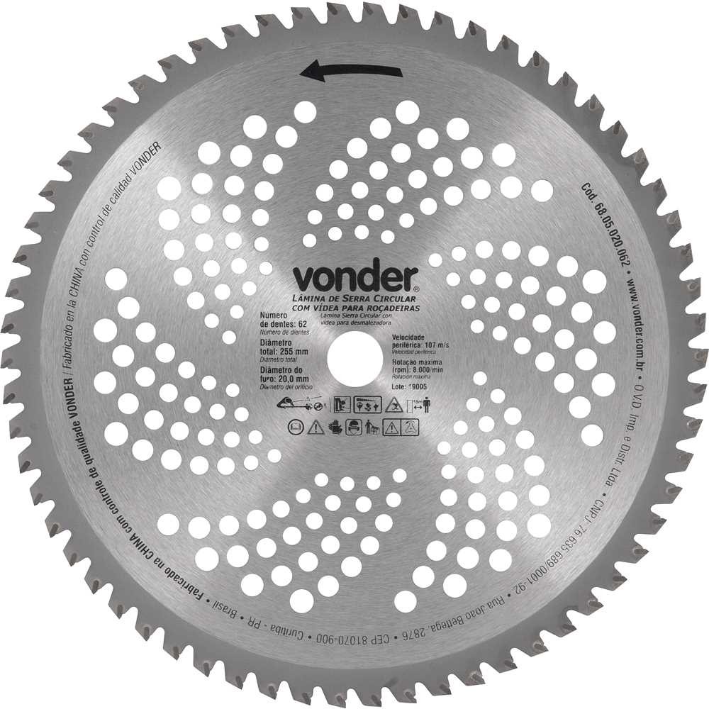 Lâmina Circular C/ Vídea Roçadeiras 255x20mm 62 Dente Vonder